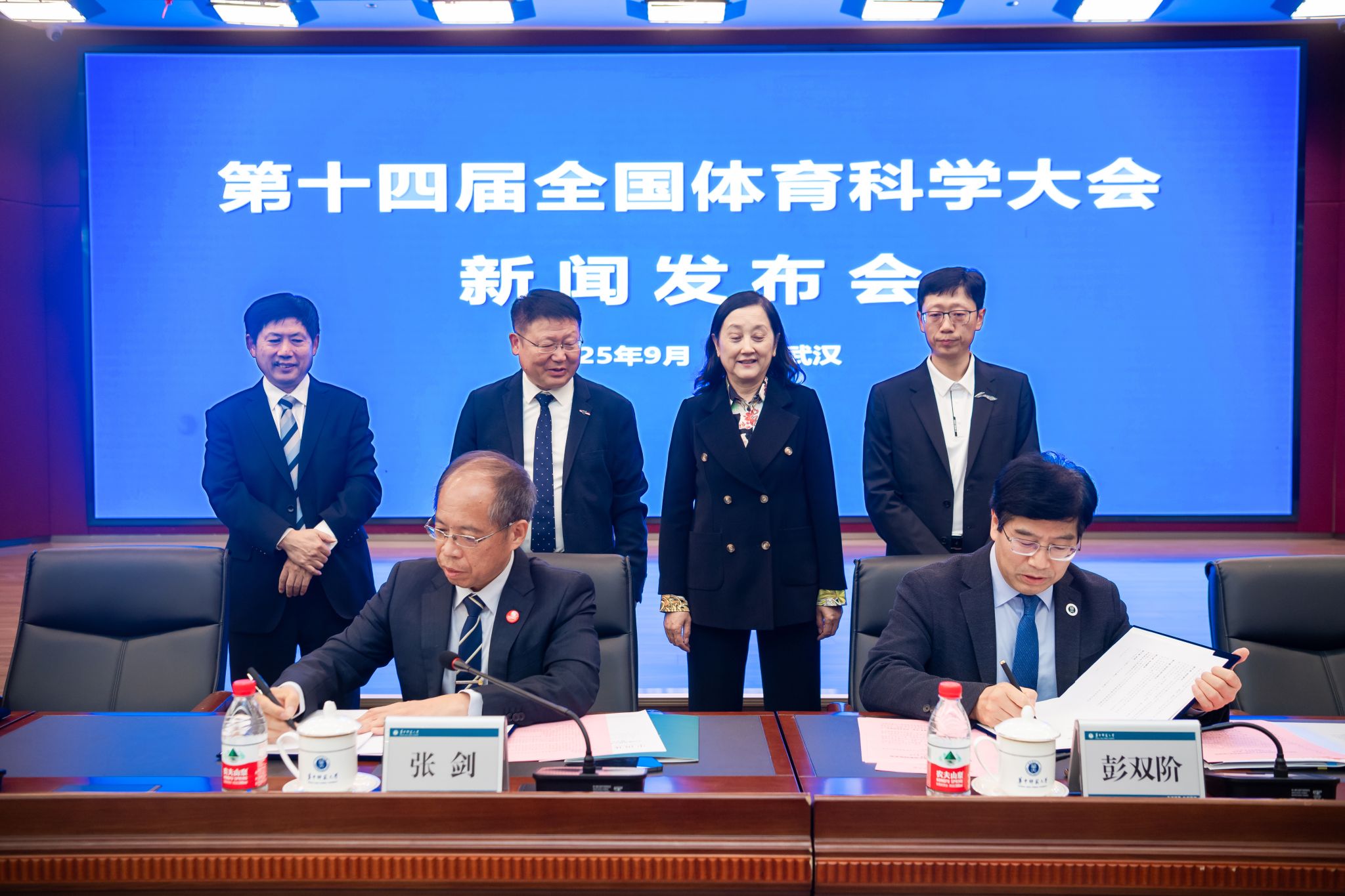 中国体育科学学会副理事长张剑代表中国体育科学学会与两家承办单位分别签订了第十四届全国体育科学大会会场承办单位合作协议。